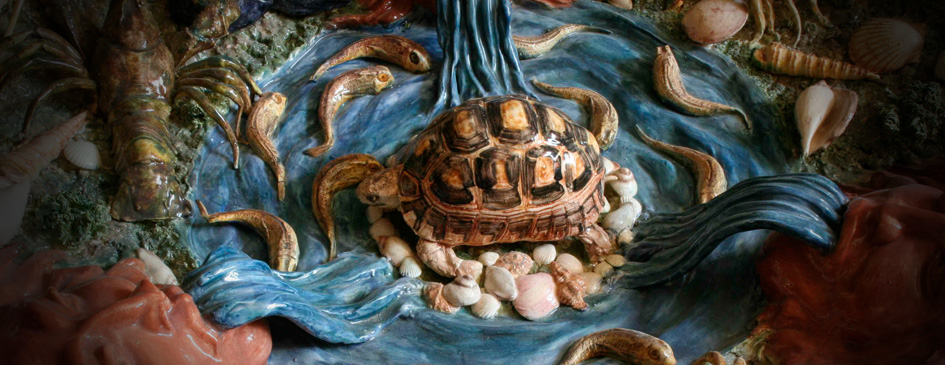 Christine Viennet, dans le sillon de Bernard Palissy durant de nombreuses années, s´inspire de l´œuvre naturaliste de ce grand humaniste et céramiste de la Renaissance. Elle lui consacre un livre, collectionne les créations de ses suiveurs depuis l´âge de 16 ans…