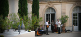 Dessinée par Louis-Michel Garros, cette petite cour raffinée et élégante, cernée d´ifs, de cyprès et de deux sphinges peut être le lieu, plus intime, d´un cocktail ou d'un petit concert…