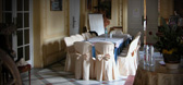 A bright and pretty room with two sliding door separations at each end, high ceilings, parquet floor and sumptuous white wooden panels is the ideal place for dinners, seminars and committees. Seven large bay windows lead you directly into the garden.