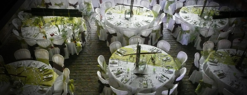 • Large round tables (1,83m pour 10/12 pers)